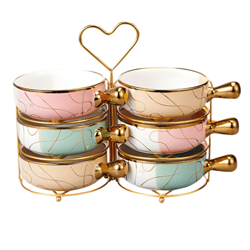 طقم شوربة بورسلين عدد 6 قطع + إستاند – الاندلس
