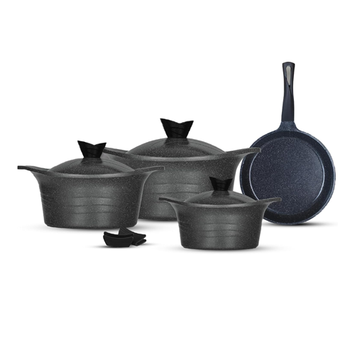 طقم جرانيت – 11 قطعة – موديل كورى حلة 32 سم طاجن +جريل+ووك – KAZAN