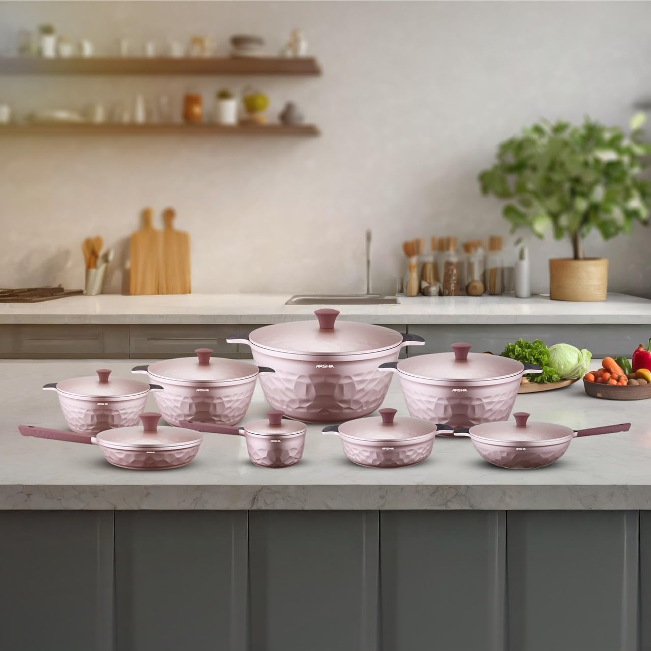 - تتميز بمادة الألومنيوم المصبوب عالية الجودة مع جزء داخلي مانع للالتصاق من التفلون مما يمنحك إمكانية إخراج الطعام بدون عناء. عزز تجربة الطهي الخاصة بك مع طقم أواني للطهي الفاخر المصنوع من الألومنيوم المصبوب المكون من 12 قطعة.