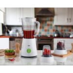 براون خلاط شفشق 3 في 1 بنظام 4 شفرات، 500 وات، 1.75 لتر كحد اقصى، سعة عمل 1.5 لتر، مع ملحق مفرمة ومرفق مطحنة، JB0123WH