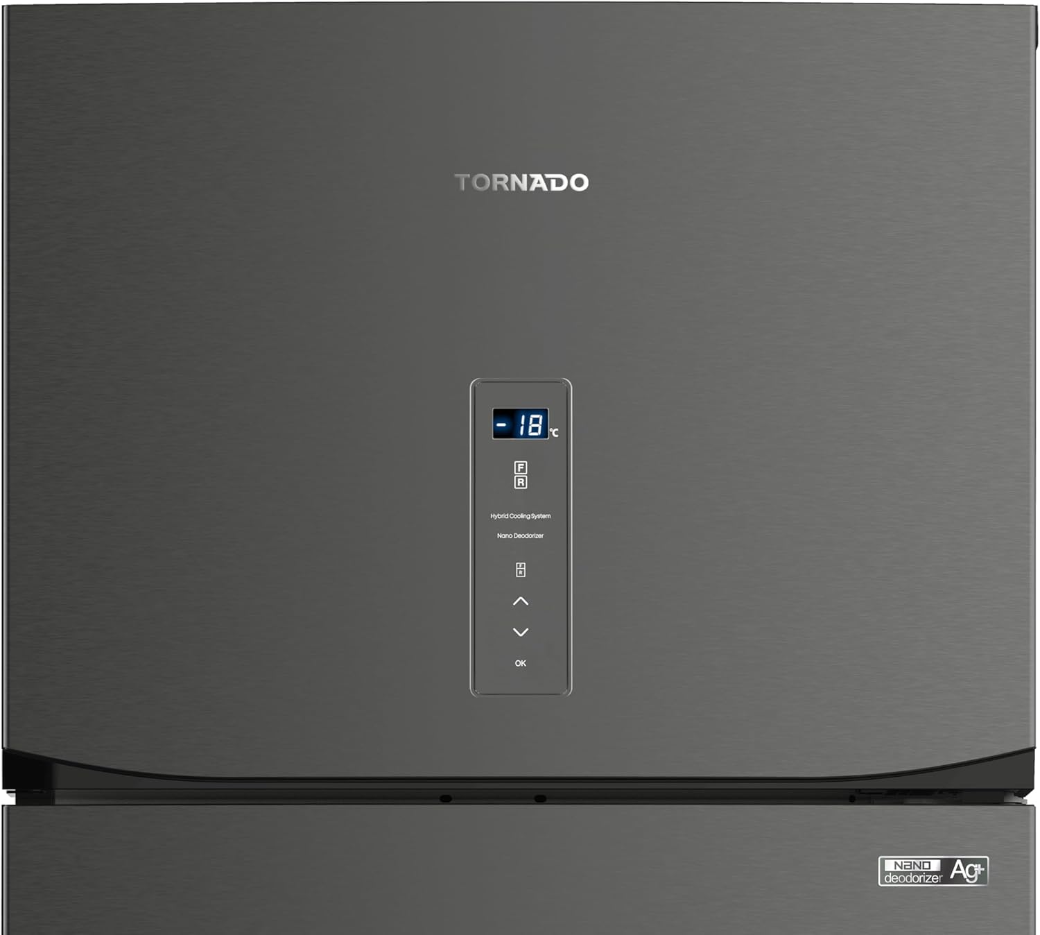 ثلاجة رقمية من الستانلس ستيل بخاصية إذابة الثلج (نو فروست) وسعة 450 لتر تورنيدو – موديل RF-580AT-ST، رمادي