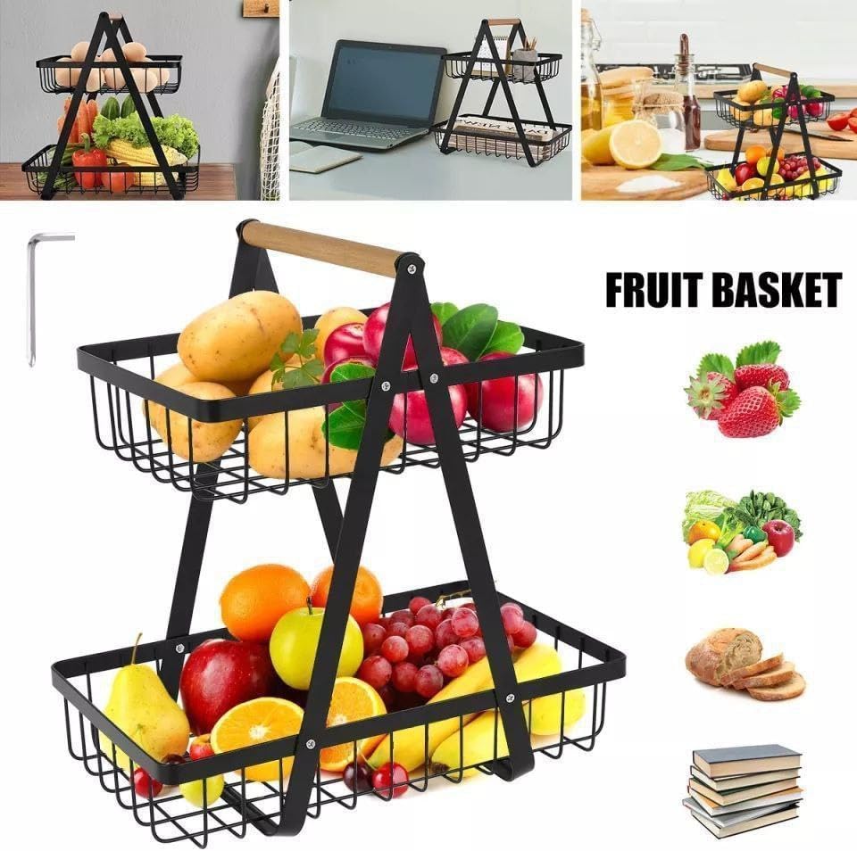 • سلة توضع على سطح الطاولة من طبقتين: السلة مثالية لحمل الفواكه والخضراوات، والحفاظ على المساحة الخاصة بك منظمة، ولا تشغل مساحة كبيرة على الطاولة. تسمح السلة ذات الأسلاك المفتوحة بتوزيع الهواء بحرية أكبر، ما يحافظ على تهوية الفواكه والخضروات وتبقى طازجة.