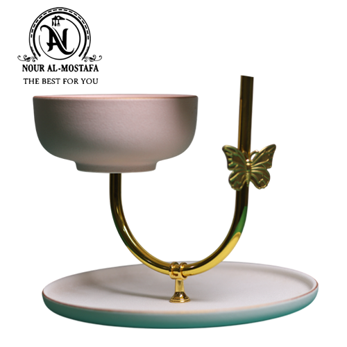 طقم فنجان قهوه - 3038 - استاند مدهب - لوتس