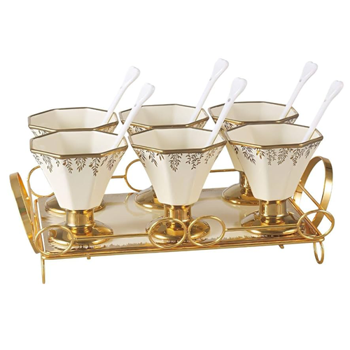 طقم أكواب جيلي مع صينية ذهبية – 13 قطعة – الأندلس