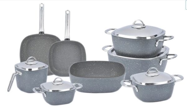 طقم حلل جرانيت مربع – يد ستانلس – 13 قطعة – سافلون