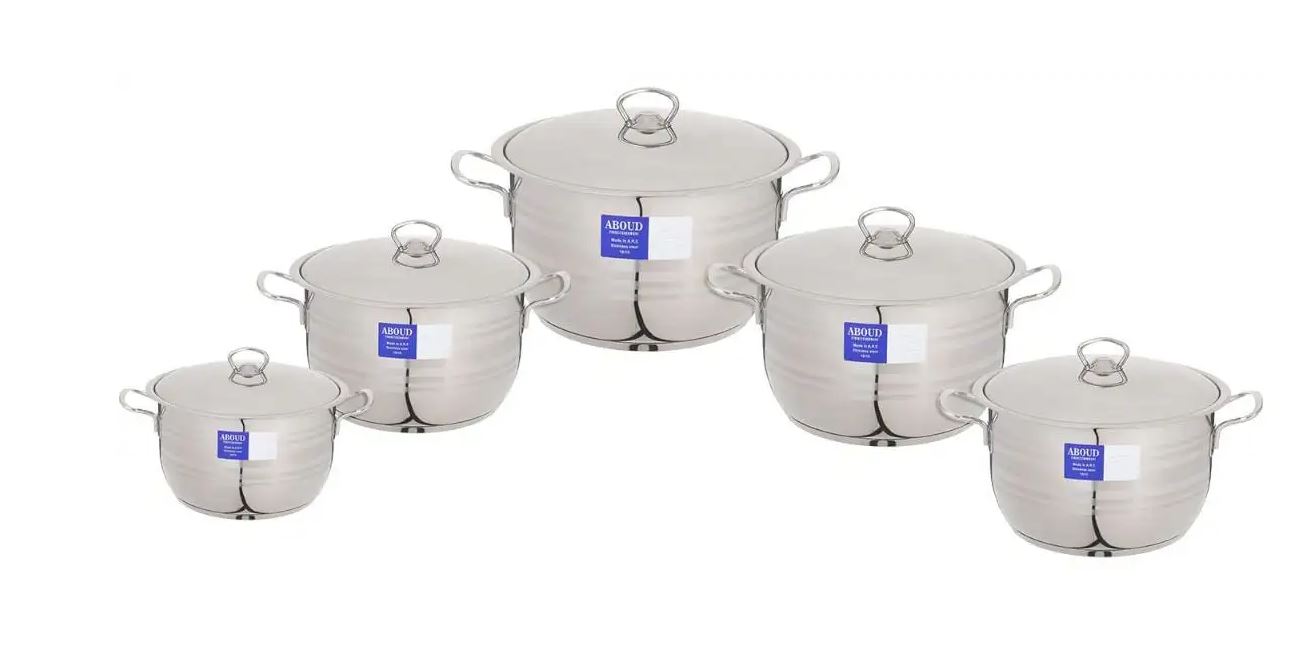 طقم حلل ستانلس ستيل مخطط – 10 قطع – فضى – عبود
