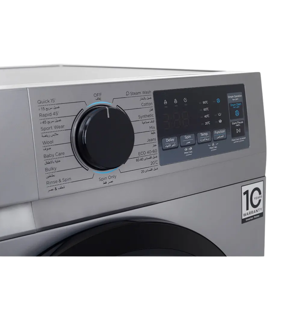 غساله ملابس اتوماتيك – 7كيلو – انفرتر سلفر بالبخار /ميديا MFN09W70B/S – ميديا