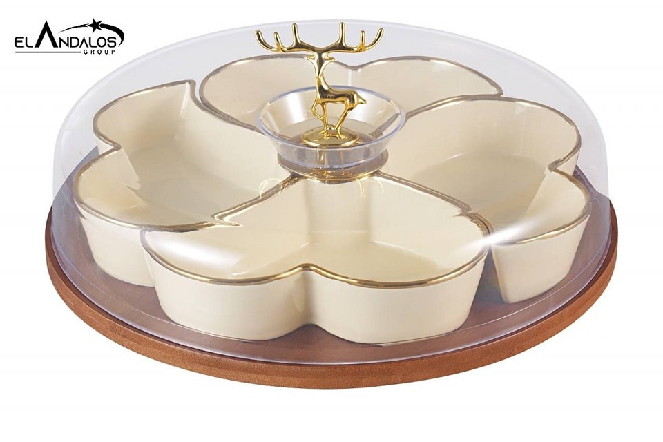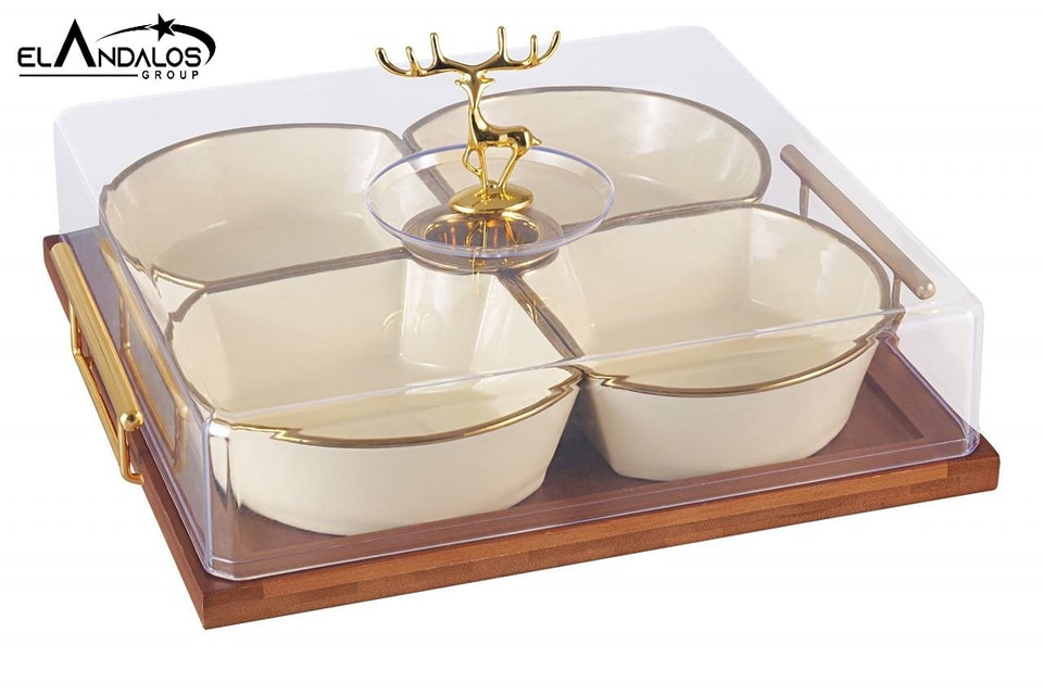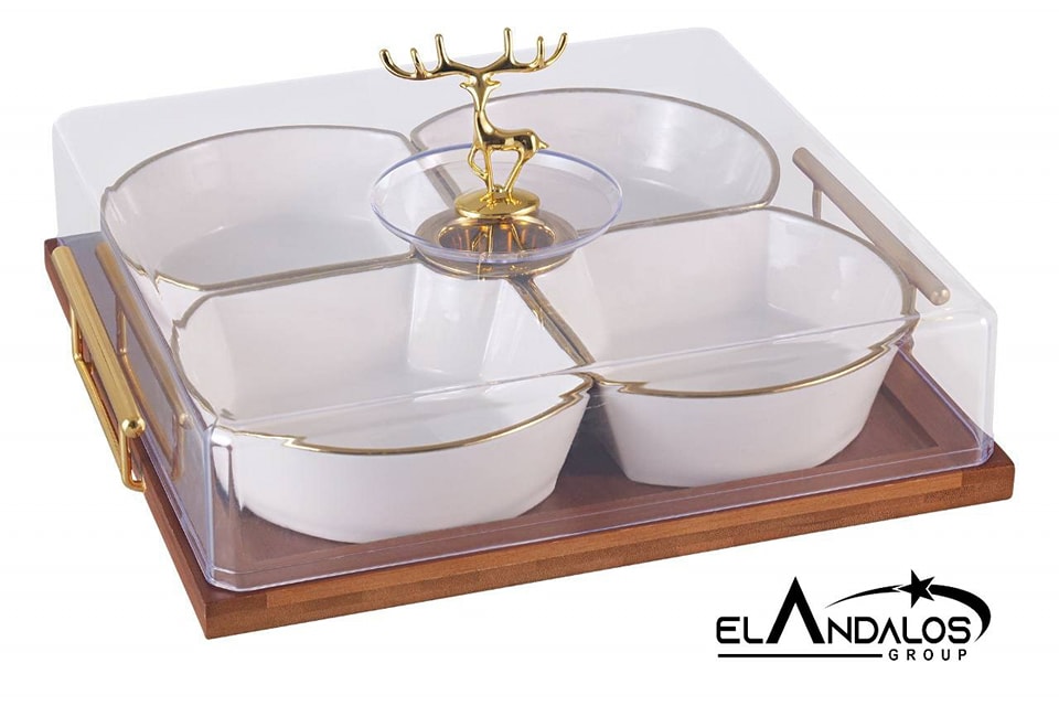 مقسمة تسالي بورسلين علي حامل خشب – الاندلس